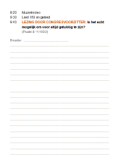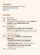 Elk ochtend-, en middagprogramma hebben een eigen inhoud. Per programma-onderdeel één dubbelzijdig gelinieerd vel om aantekeningen te maken. De openingslezing op vrijdag, openbare lezing op zondag en de slotlezing hebben één dubbelzijdig blad extra schrijfruimte.